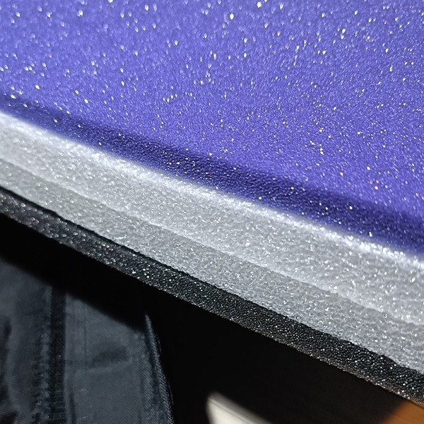 今回製作したマットの内部は『高弾性ウレタン(10mm)』『高発泡ポリエチレン(30mm)』『硬質ウレタン(10mm)』の三層構造。